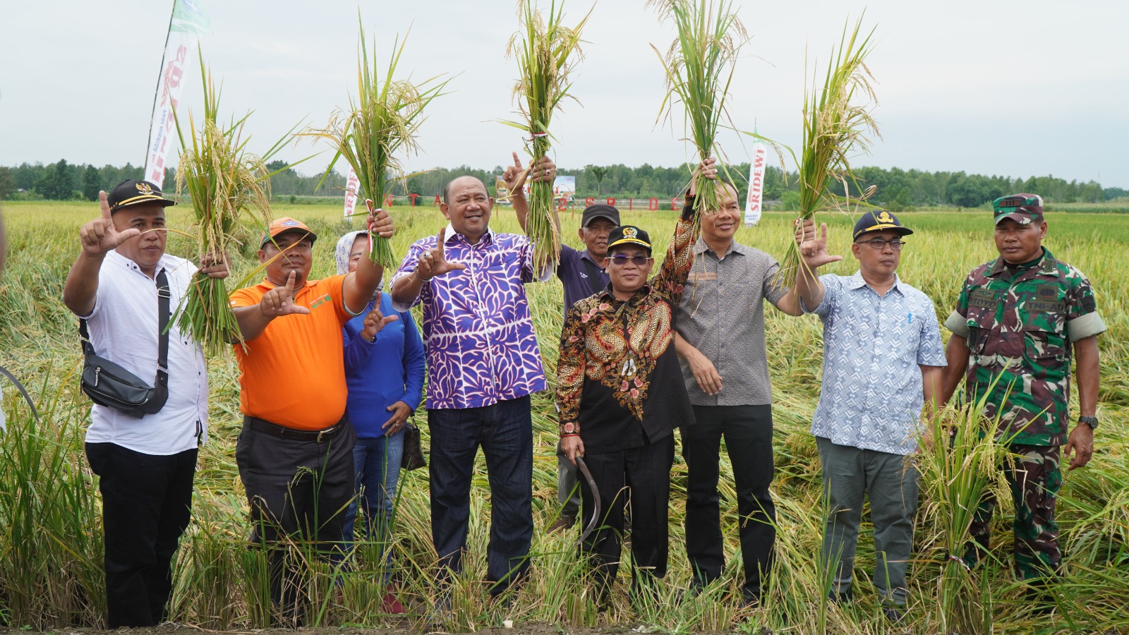 | Plt Bupati Langkat H.Syah Afandin SH hadiri acara Panen Raya Padi di Desa Pasar VI Kwala Mencirim Kecamatan Sei Bingai, Langkat, Sabtu (5/8/2023). (ft-kominfo langkat) |